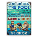 Poolside Proudly Serving Whatever You Bring Chibi Husband Wife Couple - Pool Sign - Personalized Custom Classic Metal Signs