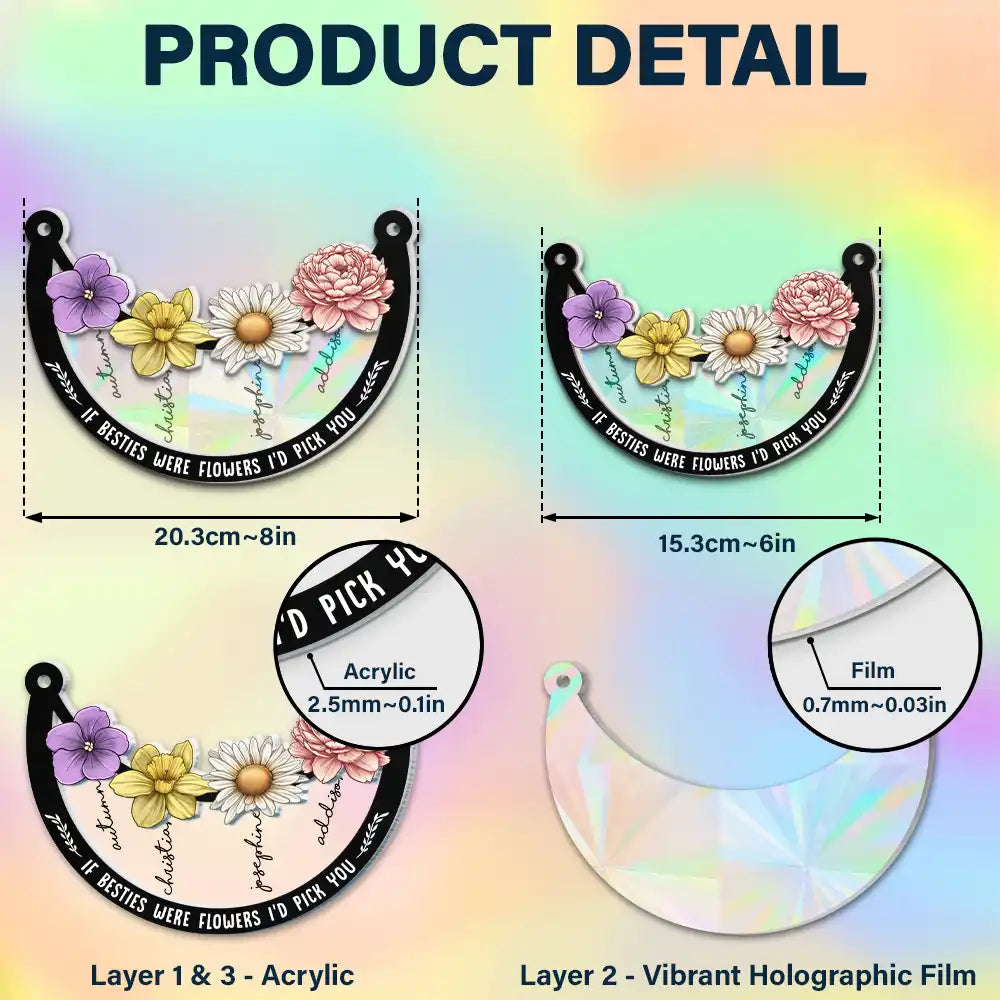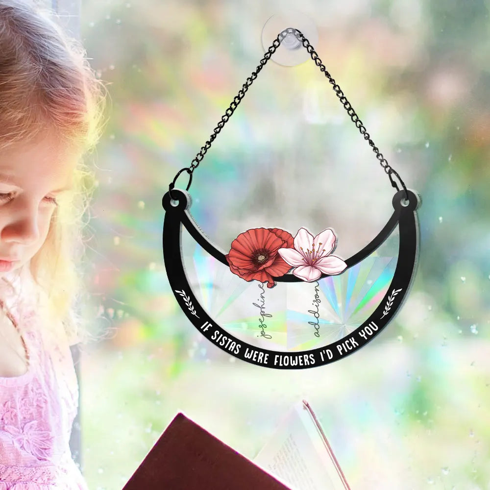 Birth Flower If Besties Were Flowers I'd Pick You - Personalized Window Hanging Rainbow Suncatcher
