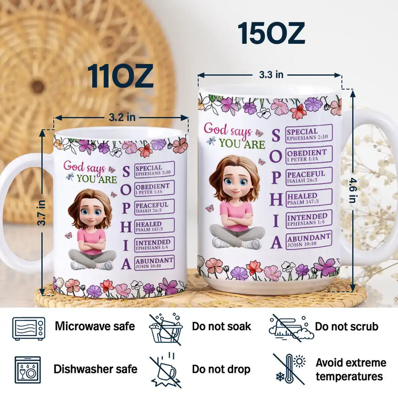 Discover inspiration every day with the God Says You Are 3D Effect Woman - Personalized White Edge-to-Edge Mug - a meaningful and joyful gift for bestie, sisters, women, or even yourself. Perfect for birthdays, Christmas, Thanksgiving, Mother’s Day, or New Year's, this mug uplifts with faith and positivity.