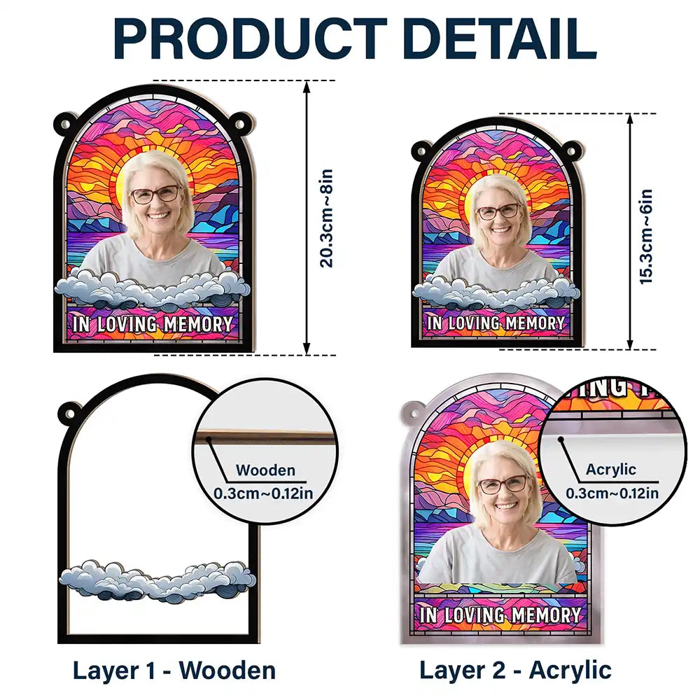 Introducing the Custom Photo "In Loving Memory" Family Memorial Mom Grandma Personalized Window Hanging Suncatcher Ornament – a heartfelt tribute to the ones we hold dear. This unique, custom photo ornament is a meaningful and thoughtful way to honor the memory of a beloved family member.