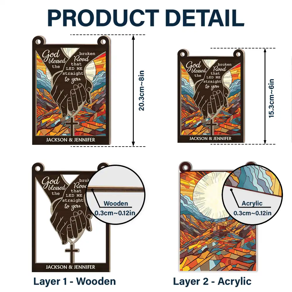 God Blessed The Broken Road Christian Couple - Personalized Window Hanging Suncatcher Ornament