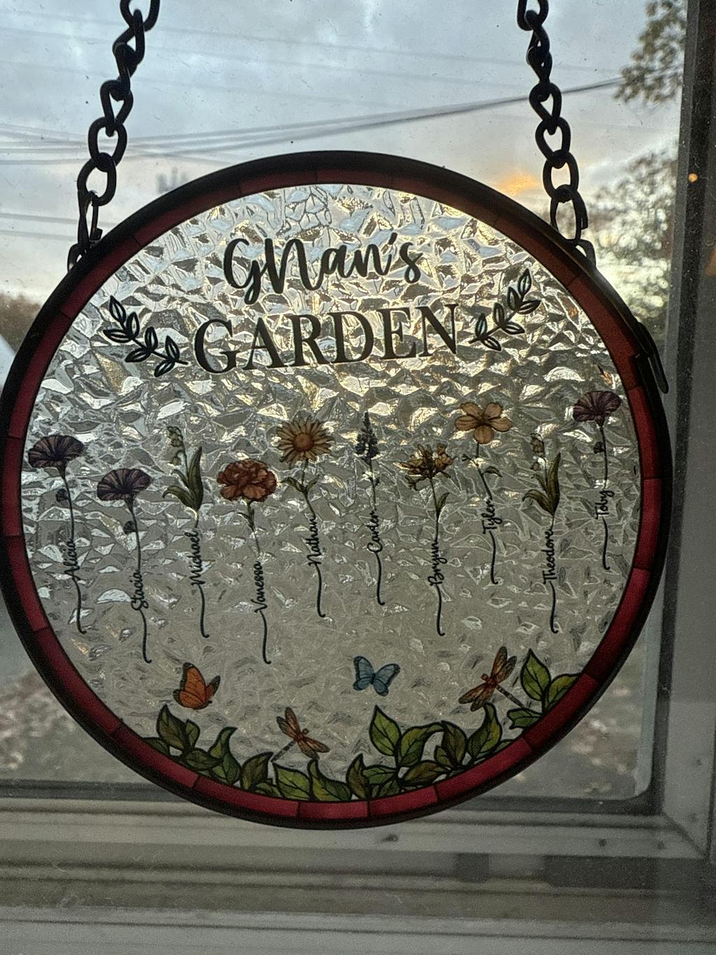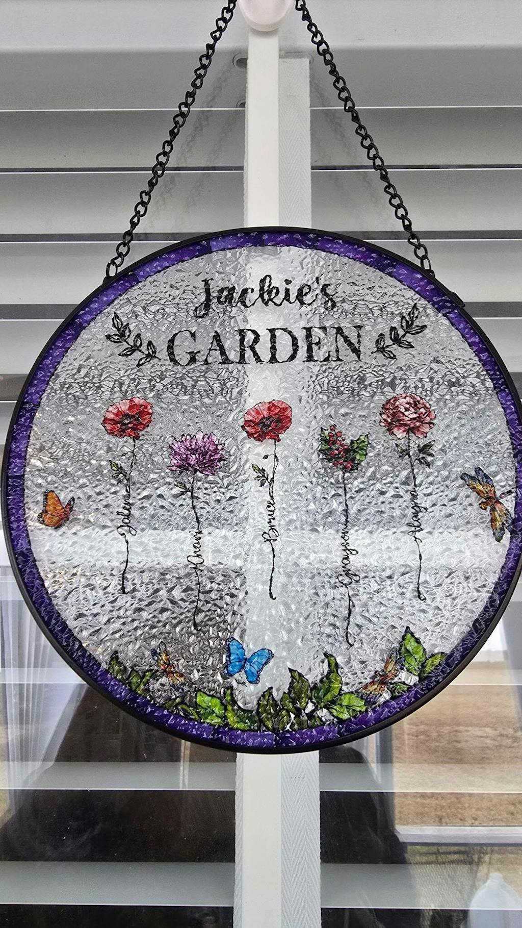 Birth Flower Grandma's Garden - Personalized Stained Glass Window Hanging Suncatcher
