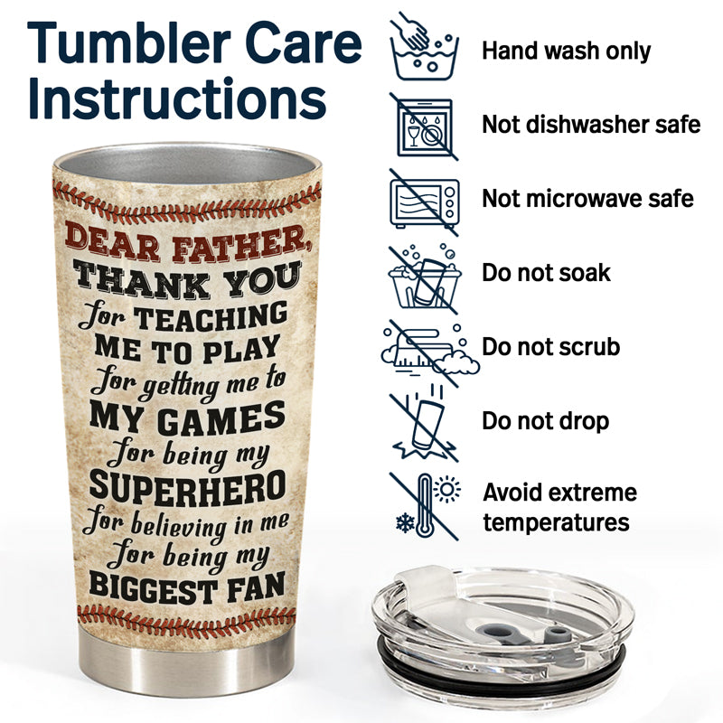 Baseball Dear Dad Thank You For Teaching Me - Gift For Father - Personalized Custom Tumbler