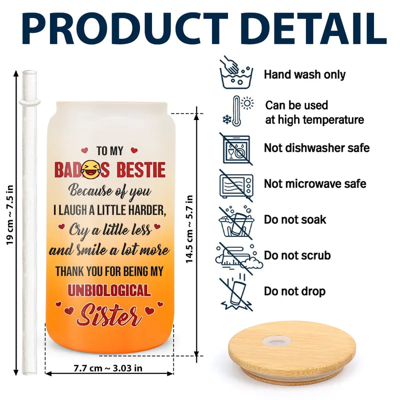 Celebrate the bond you share with your best friend with the Because Of You I Laugh A Little Harder Personalized Ombre Frosted Glass Can. This unique and cool glass can is the perfect gift for besties who bring endless laughter and joy into your life. Whether you use it for a refreshing summer drink at the beach, a cozy coffee at home, or a fun-filled get-together, this frosted glass can is designed to bring a smile to your face every time.