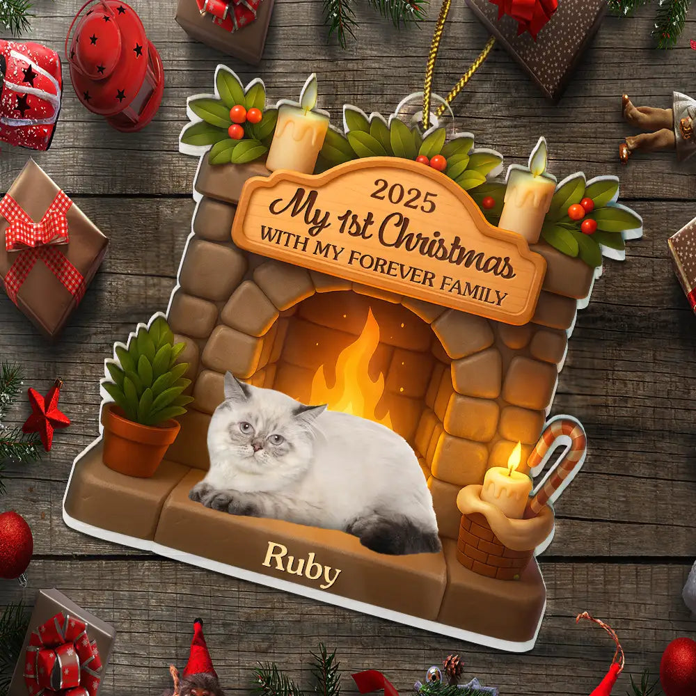 Custom Photo First Christmas With My Forever Family - Personalized Custom Shaped Acrylic Ornament