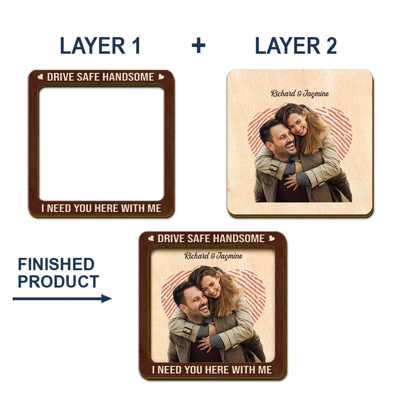 Custom Photo Kissing Couple Drive Safe I Need You Here With Me - Personalized Custom Shaped Car Visor Clip