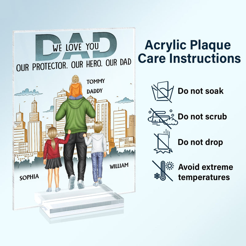 Dad Our Protector Our Hero Our Dad - Birthday Gift For Father, Family - Personalized Custom Vertical Rectangle Acrylic Plaque