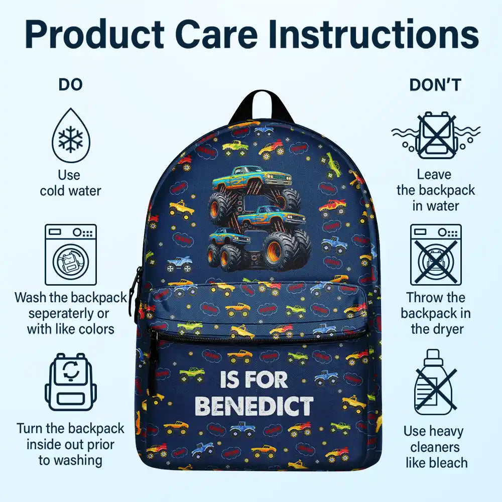 Kid Monster Truck Toy Container Monogram Initial - Personalized Canvas Backpack