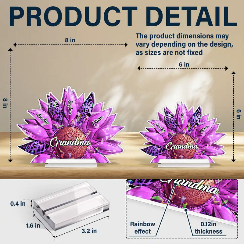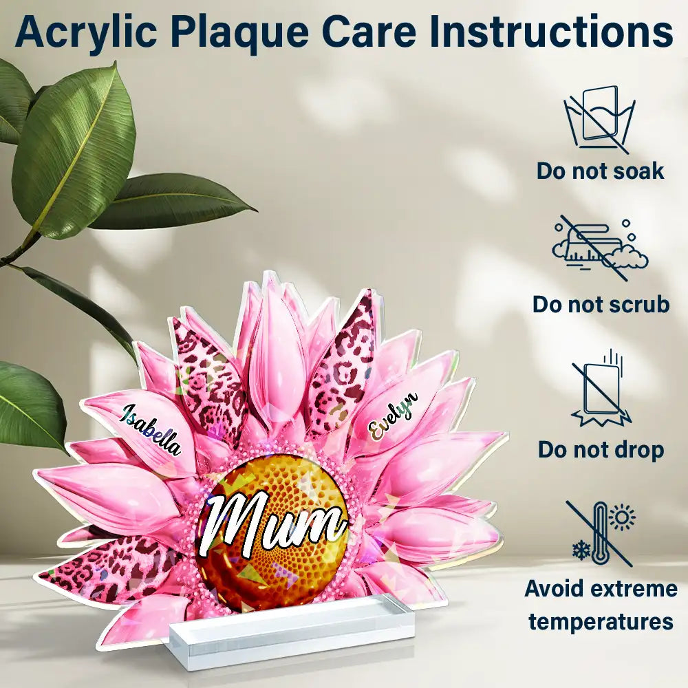 Nana, Mom, Auntie Family Leopard Sunflower 3D Effect - Personalized Holographic Acrylic Plaque