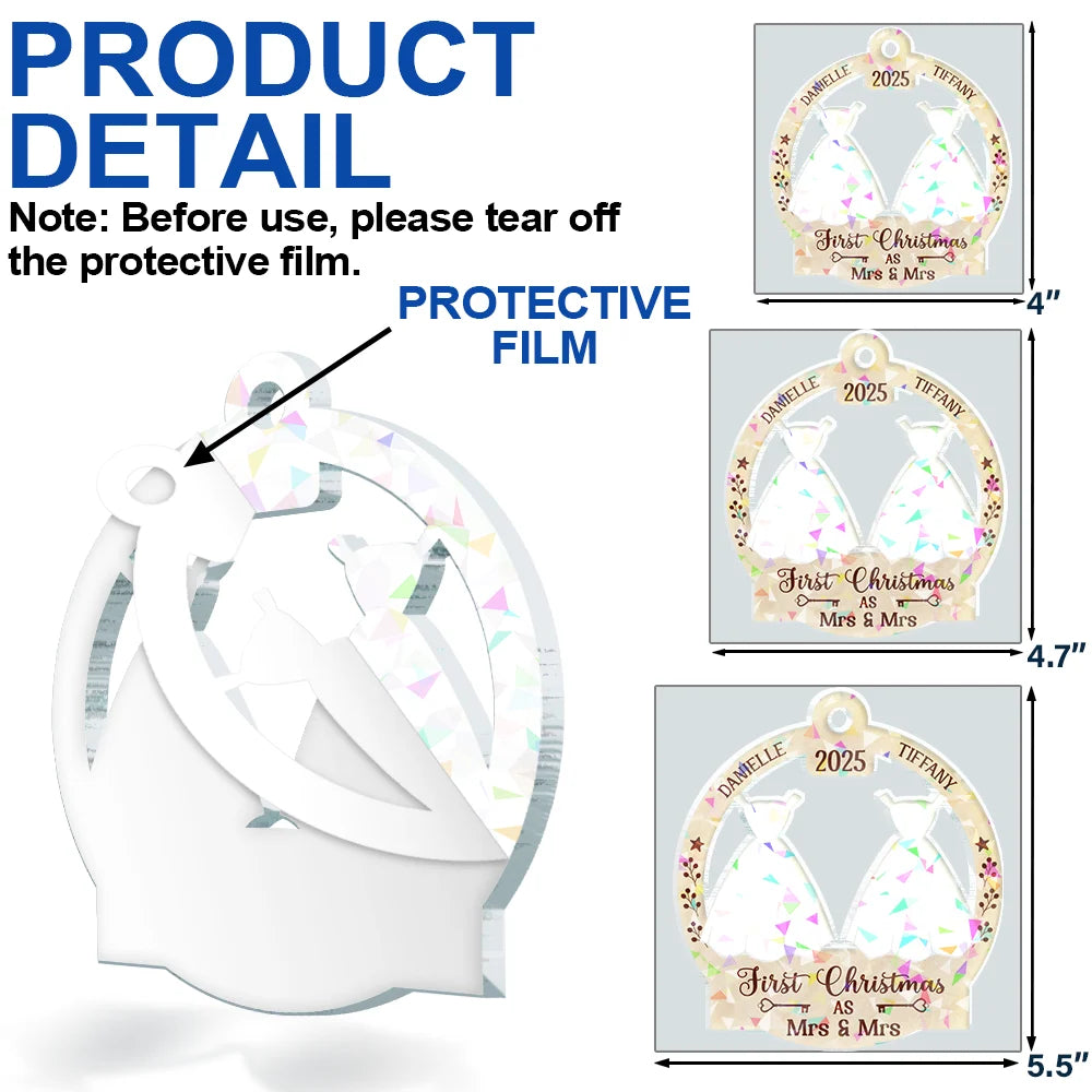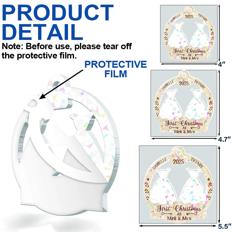 Our First Christmas Married - Personalized Holographic Acrylic Ornament