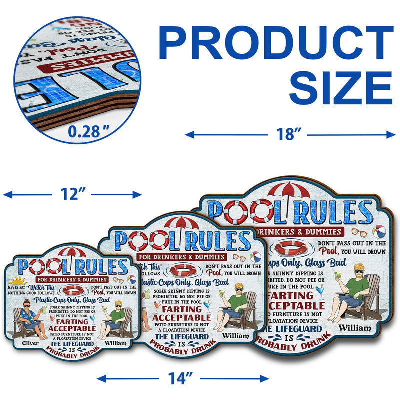 Pool Rules For Drinkers And Dummies - Home Decor, Backyard Decor, Gift For Her, Him, Family, Couples, Husband, Wife - Personalized Custom Shaped Wood Sign