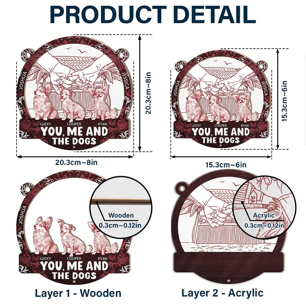 Summer Couple You And Me And The Dogs Toile Art - Personalized Window Hanging Suncatcher Ornament